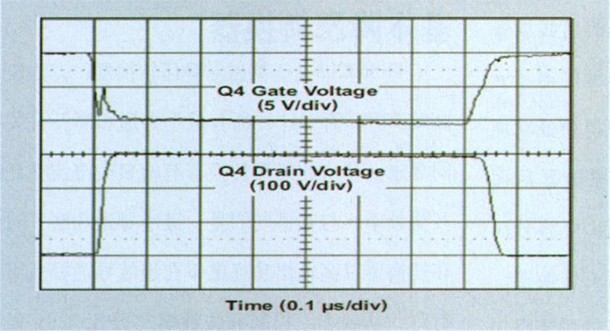 圖 3 一個開關(guān)周期的Q4柵極和漏極電壓