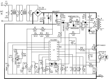 圖2:NCL30001 CVCC 90 W演示板初級(jí)側(cè)原理圖