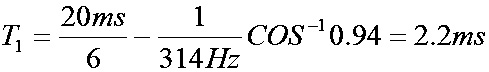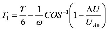 式中,Id為輸入電流125A;△U為電壓變化量(△U =Ud0×10%=54V);T1為電容放電時(shí)間; Ud0為空載直流電壓540V;T為工頻交流電周期20ms;為工頻交流電角頻率),可得: