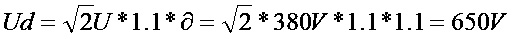 Ud=1.35×380=513V (5)