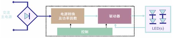 在“功率因數(shù)校正(PFC)+恒壓(CV)+恒流(CC)”的三段式架構(gòu)下,交流-直流(AC-DC)轉(zhuǎn)換與LED驅(qū)動(dòng)電路并未集成在一起,而是采用分布式配置,既簡(jiǎn)化安全考慮又增強(qiáng)系統(tǒng)靈活性,也稱作分布式方案,典型應(yīng)用包括線性燈及線槽燈等。