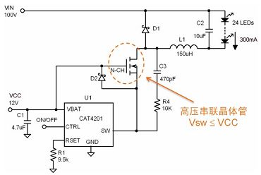 圖4 CAT4201高壓LED驅(qū)動(dòng)器配置