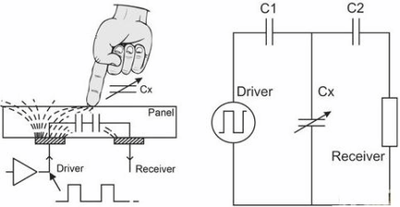 與之相反,橫向模式電荷轉(zhuǎn)移感測是每個感測元素都采用兩個電極。基本上,其電氣行為與單端電荷轉(zhuǎn)移感測相同,但這些電路在發(fā)送/接收矩陣中采用電極數(shù)組創(chuàng)造觸控屏幕功能。該方案的優(yōu)點是其需要的布線較少,更甚之能同時識別和區(qū)分多個觸點之間的差異,單端電路也可感測多個觸點,不過由于訊號本身模糊,故不能區(qū)分。此外,橫向模式方案還有速度快和功耗低的優(yōu)勢,因為其能同時測量一條驅(qū)動線路上的所有節(jié)點,所以可減少50%的采集周期數(shù)。這種雙電極式結(jié)構(gòu)具有自我屏蔽外部噪聲的功能,在定功率級上可提高訊號穩(wěn)定性,因此,量研科技(Quantum Research)一直將橫向模式感測技術(shù)作為驅(qū)動觸控屏幕的主要方案,利用高載模式采樣、擴頻調(diào)制及數(shù)字訊號處理等各種增強型技術(shù)的結(jié)合,促成抗噪聲源干擾能力強,即使在惡劣環(huán)境下也較穩(wěn)健的解決方案。