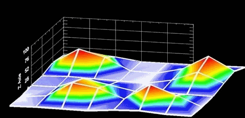 利用單層膜同步執(zhí)行雙觸點檢測也是可行的,但若采用能夠同時解決多觸點事件的雙層技術(shù),性能便會好得多。如圖7顯示在一個實驗室測試模型中使用者用三根指頭和大拇指時,電場的三維測量結(jié)果。