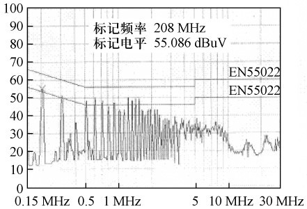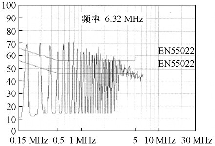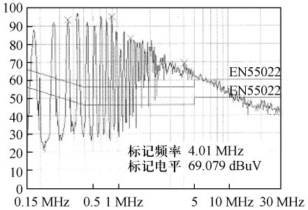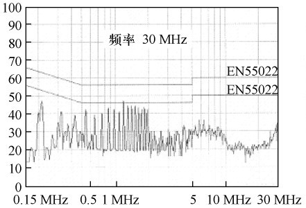 由式(4) 可知:在電路工作情況不變的狀況下,共模電流i1的第一項(xiàng)減小為原來的1 /(2m +1),故傳導(dǎo)EMI 減小了,測(cè)試結(jié)果如圖9 所示。