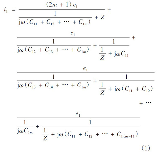 以圖3 所示的變壓器為例,最上層一次繞組與二次繞組間的寄生電容最大,是產(chǎn)生共模傳導(dǎo)EMI 的主要原因,故以下主要分析這兩層間分布電容對(duì)共模傳導(dǎo)EMI 的影響,忽略變壓器其他繞組對(duì)共模傳導(dǎo)EMI 的影響。