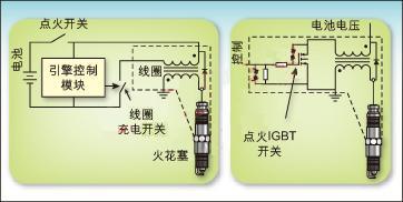 若從安裝在汽車(chē)分電器中的機(jī)械觸點(diǎn)技術(shù)算起,點(diǎn)火系統(tǒng)經(jīng)已走過(guò)一段很長(zhǎng)的發(fā)展歷程。今天,這些機(jī)械觸點(diǎn)和分電器已經(jīng)退位??刂凭€圈中電流的IGBT開(kāi)關(guān)已不僅僅是一個(gè)開(kāi)關(guān),而是與引擎管理系統(tǒng)其余部分集成在一起的控制元件。線圈開(kāi)關(guān)中需要包含的功能將變得越來(lái)越多,例如為改善燃油燃燒而開(kāi)發(fā)出多火花系統(tǒng),以及為了監(jiān)視燃燒質(zhì)量而添加次級(jí)(火花塞)電流監(jiān)視功能。
