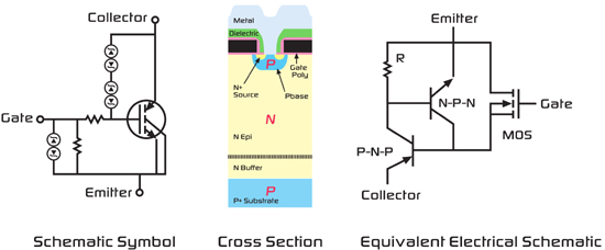很多年前,IGBT就已成為點(diǎn)火應(yīng)用中的開(kāi)關(guān)。圖2所示為IGBT的剖面圖。較之于其它技術(shù),IGBT有如下一些重要優(yōu)點(diǎn):