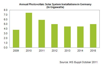 據(jù)IHS iSuppli公司的光伏市場研究,在經(jīng)歷了7、8月份的低迷后,全球最大的光伏安裝市場德國有望于10月和11月迎來光伏系統(tǒng)訂單的增長,這是由于德國可能在明年一月份下調上網(wǎng)電價。上網(wǎng)電價的下調將刺激太陽能安裝量,投資者和業(yè)主們都在抓緊機會下訂單。