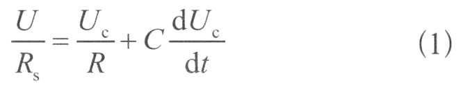 當模塊正常工作時,DC/DC開關電源可以等效為電壓源,其輸出等效電路圖和簡化后的等效電路圖分別如圖1和圖2所示。其中,U是輸出電壓,RS是等效內阻,RL是輸出負載電阻,C是輸出電容,