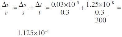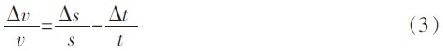 為依據(jù)國標(biāo)QBT2443-1999 的規(guī)定計算。規(guī)定一級鋼卷尺自零點端起到任意線紋的示值誤差限為:Δ=(0.1+0.1L)mm,L 單位為m。若測試距離取0.3m,Δs 取0.03mm,待測運動物體速度為300m/s,那么將數(shù)據(jù)代入式(4)得到系統(tǒng)測速的最大相對誤差為: