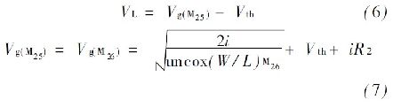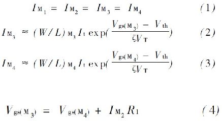 式中: K = (W/ L ) M4 / ( W/ L ) M3 ,通過式(5) 可以發(fā)現(xiàn),偏置電流I M1 , I M2與輸入電源無(wú)關(guān)。