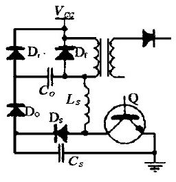 3) 無(wú)源回饋關(guān)斷緩沖電路(圖4): 圖中Co 為轉(zhuǎn)移電容, Dc 為回饋二極管,由這兩個(gè)元件將能量回饋到負(fù)載上。當(dāng)管子關(guān)斷時(shí),緩沖電容Cs 充電至電源電壓Vcc ,在管子下一次開(kāi)通時(shí),負(fù)載電流從續(xù)流二極管Df 轉(zhuǎn)移至晶體管。同時(shí), Cs 上的電壓諧振到Co 上。 當(dāng)管子再關(guān)斷時(shí),電容Cs 再次充電,電容Co向負(fù)載放電,能量得到回饋。