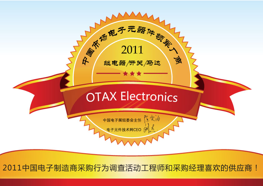 - OTAX Electronics榮獲2011中國(guó)市場(chǎng)電子元器件領(lǐng)軍廠商稱號(hào)