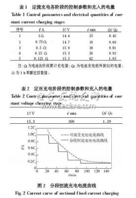 增大充電電流,電池極板上單位時間內恢復的活性物質增多,充電時間就可縮短,但過大的充電電流會損害電池。電池可接受的充電電流是有限的,且會隨充電時間呈指數(shù)規(guī)律下降。在電池充電過程中,充電電流曲線在該指數(shù)函數(shù)曲線以上時會導致電池電解液發(fā)生析氣反應(過充電) ,反之則不能有效縮短充電時間。理想化的電池快速充電過程是充電電流始終保持在電池充電可接受電流的極限值,即充電電流曲線與該電池的充電可接受電流曲線相重合。本文選擇容易實現(xiàn)的分段恒流充電方法,其關鍵是要確定適當?shù)碾A段恒流充電終止判斷標準、恒流充電分段數(shù)和各階段恒流充電電流值。