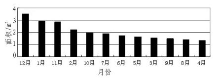 圖8 各月太陽(yáng)能電池板對(duì)應(yīng)面積排列柱形圖