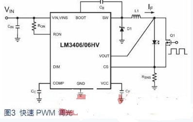 4. 通過(guò)外部分流器FET實(shí)現(xiàn)PWM調(diào)光。