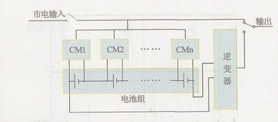 圖2所示是本文提出的一種蓄電池組均衡充電模式結(jié)構(gòu)示意圖, 圖中CM表示充電器或充電模塊。在這種均衡式充電模式中, 對電池組的每一節(jié)電池都單獨配置一個充電模塊, 它是均衡式充電裝置的核心。在應(yīng)急電源中, 當(dāng)處于非應(yīng)急狀態(tài)運行時, 應(yīng)急電源的輸出通過開關(guān)直接由市電供給, 這時, 逆變器不工作, 各充電模塊給各節(jié)相應(yīng)的電池進(jìn)行充電或浮充電。當(dāng)應(yīng)急電源處于應(yīng)急工作狀態(tài)時, 由電池組給逆變器供電, 通過逆變器輸出應(yīng)急逆變交流電源。這時, 由于各充電模塊無交流輸入, 處于不工作狀態(tài), 不影響蓄電池組的放電工作狀態(tài)。