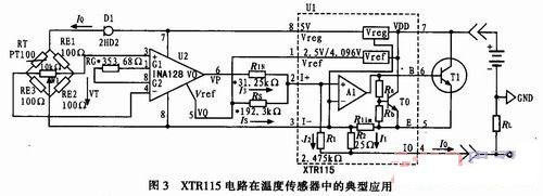3 XTR115兩線制電流環(huán)典型應(yīng)用