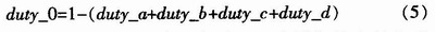 以虛擬整流器、逆變器均工作在第一扇區(qū)為例,相量合成的固定空間電流、電壓相量分別是I6、I1和U6、U1,兩個空間相量的綜合調(diào)制采用相互嵌套的辦法來實現(xiàn)。整個輸入相電流和輸出相電壓相量合成共有I6-U6、I6-U1、I1-U6、I1-U1、I0-U0 5種組合。每一相量組合的作用時間用占空比duty來表示。等式(1~5)反映了占空比的計算公式。占空比可以通過表1來分配給相應的開關組合。