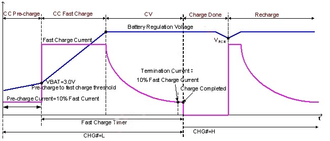 然而,當電池故障時,電池可能無法儲存電能,電壓抑不會升高,所充入的能量轉(zhuǎn)變成熱,除了依靠過溫度保護機制之外,IC內(nèi)部亦具有超時計時器,無論此時電池電壓狀態(tài)如何,只要超過設(shè)定充電時間后,隨即關(guān)閉充電器,以達到多重保護使用者之功能。