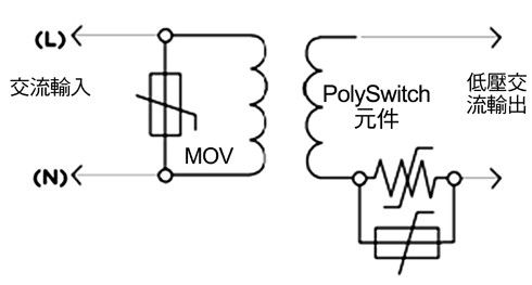 在照明系統(tǒng)中采用第二類功率源可成為降低成本、提高彈性的重要因素之一。固有的有限功率源,如變壓器、電源供應(yīng)器或電池等,可以包含保護組件,只要不依靠它們限制第二類功率源的輸出即可。非固有型的有限功率源,按照定義,具有一個分立保護組件,當(dāng)電流和能量輸出達到預(yù)定值時它會自動中斷輸出,各種電路保護組件都有助于提供LED照明應(yīng)用第二類功率源的安全操作。圖4表示了一種協(xié)同保護策略的工作原理,它在交流輸入上采用了一個MOV,在輸出電路分支上采用了一個PolySwitch組件,可以幫助廠商滿足UL 1310第35.1小節(jié)針對開關(guān)和控制裝置的過載試驗要求。