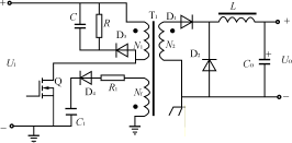開關(guān)穩(wěn)壓電源與傳統(tǒng)的線性穩(wěn)壓電源相比具有體積小、重量輕、效率高等優(yōu)點(diǎn),已成為穩(wěn)壓電源的主流產(chǎn)品。為使電源結(jié)構(gòu)簡(jiǎn)單、緊湊,工作可靠、減少成本,小功率開關(guān)穩(wěn)壓電源常采用單端反激型或單端正激型電路。與單端反激型相比,單端正激型開關(guān)電流小、輸出紋波小、更容易適應(yīng)高頻化。用電流型PWM控制芯片UC3843構(gòu)成的單端正激型開關(guān)穩(wěn)壓電源的主電路如圖1所示。