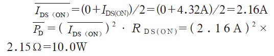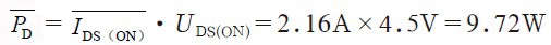 =2.16A時所對應(yīng)的UDS(ON)=4.5V.若根據(jù)U DS(ON)值計算,則: