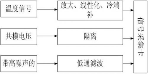 直接采集來的信號由于噪聲等原因不一定能夠滿足采集系統(tǒng)的要求,為了適合數(shù)據(jù)采集設(shè)備的輸入范圍,由傳感器生成的電信號必須經(jīng)過處理。信號調(diào)理裝置能夠按照要求放大或者縮小電壓電流范圍,并對信號進(jìn)行隔離濾波等處理。光伏監(jiān)測系統(tǒng)的信號調(diào)理圖如圖3所示。