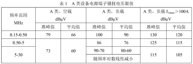 要想讓逆變焊機(jī)內(nèi)部產(chǎn)生的電磁騷擾徹底消除是不可能的, 我們只要使焊機(jī)符合 GB15579.10 標(biāo)準(zhǔn)的要求就可以了,電源端子騷擾電壓的限值見表 1。IGBT 逆變焊機(jī)通過空載試驗(yàn)一般都沒有問題,焊機(jī)負(fù)載狀態(tài)(I1max≤100A)的騷擾電壓限值見表 1 的 A類。