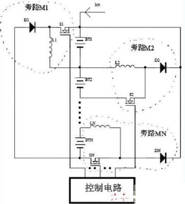 4.運(yùn)用分時(shí)原理,通過開關(guān)組件的控制和切換,使額外的電流流入電壓相對較低的電池中以達(dá)到均衡充電的目的。該方法效率比較高,但控制比較復(fù)雜。