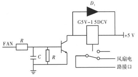 電路如圖6 所示,F(xiàn)AN 為低電平時(shí),晶體管9014 不導(dǎo)通,此時(shí)繼電器無動(dòng)作; 當(dāng)FAN 為高電平時(shí),晶體管9014 導(dǎo)通,使得繼電器觸點(diǎn)吸合,風(fēng)扇在24 V 電源電壓的供電下開始工作。