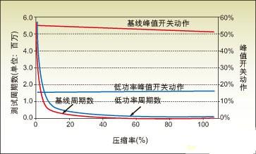 圖4:測試周期數(shù)和峰值開關(guān)動作與壓縮率之間的關(guān)系。