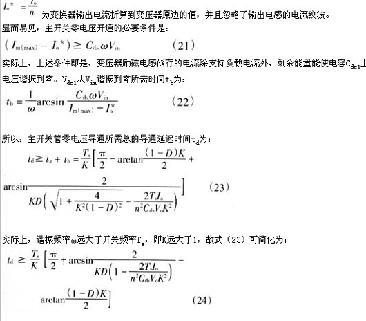 6)設(shè)定死區(qū)延遲時間td,針對不同的軟開關(guān)實(shí)現(xiàn)方法,分別從式(21)、(24)或(25)、(26)求出所需的系數(shù)k。