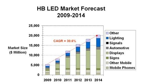 根據(jù) Strategies Unlimited 公司的數(shù)據(jù) (參見(jiàn)圖 1),到 2012 年,高亮度 (HB) LED 的市場(chǎng)規(guī)模預(yù)計(jì)將達(dá)到 120 億美元,到 2015 年,該市場(chǎng)將增長(zhǎng)到 202 億美元,年復(fù)合增長(zhǎng)率為 30.6%。目前,用來(lái)給顯示器進(jìn)行背光照明的 LED 是這種前所未有的增長(zhǎng)的主要驅(qū)動(dòng)力。應(yīng)用包括高清電視機(jī)(HDTV)、汽車(chē)顯示器和大量手持式設(shè)備。為了保持這種令人驚嘆的增長(zhǎng)率,LED 不僅必須提供增強(qiáng)的可靠性、更低的功耗和更小 / 更扁平的外形尺寸,而且必須實(shí)現(xiàn)對(duì)比度、畫(huà)面清晰度和色彩準(zhǔn)確的明顯改進(jìn)。此外,汽車(chē)、航空電子設(shè)備和航海電子產(chǎn)品的顯示器必須最大限度地實(shí)現(xiàn)所有這些改進(jìn),同時(shí)能接受從明亮的太陽(yáng)光到?jīng)]有月亮的夜晚等多種環(huán)境照明條件。這些由晶體管液晶顯示器(TFT-LCD) 實(shí)現(xiàn)的顯示應(yīng)用包括信息娛樂(lè)系統(tǒng)、計(jì)量表和種類繁多的儀表顯示器。用 LED 對(duì)這些顯示器進(jìn)行背光照明引起了一些獨(dú)特的 LED IC 驅(qū)動(dòng)器設(shè)計(jì)挑戰(zhàn),因?yàn)橐诙喾N環(huán)境照明條件下優(yōu)化顯示器的可讀性。這要求 LED 驅(qū)動(dòng)器能提供非常寬的調(diào)光比和高效率轉(zhuǎn)換,同時(shí)能承受汽車(chē)中相對(duì)苛刻的電及物理環(huán)境的嚴(yán)酷性。最后,這些解決方案必須提供非常扁平、緊湊的占板面積,同時(shí)提高性價(jià)比。