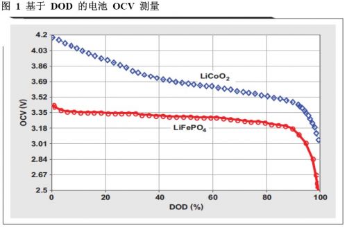 然而,更新電池總化學(xué)容量 (Qmax) 相關(guān)信息要求具備某些條件。磷酸鐵鋰(LiFePO4) 電池的極端穩(wěn)定電壓狀態(tài)下要完成這項(xiàng)工作變得較為困難(請(qǐng)參見圖1),特別是如果無法對(duì)電池完全放電且讓其休息數(shù)小時(shí)那就更加困難了。圖 1顯示了典型開路電壓 (OCV) 特性與鈷酸鋰 (LiCoO2) 和磷酸鐵鋰 (LiFePO4)電池化學(xué)屬性放電深度 (DOD) 的關(guān)系。本文主要討論參考文獻(xiàn) 1 和參考文獻(xiàn)2 的阻抗跟蹤技術(shù)。