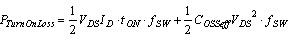 在這一公式中,ID 為剛導(dǎo)通后的漏電流, VDS 為開關(guān)上的電壓, COSSeff 為等效輸出電容值(包括雜散電容效應(yīng)),tON 為導(dǎo)通時(shí)間,fSW 為開關(guān)頻率。.