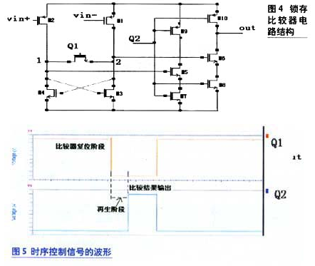 RS與兩個(gè)相反的時(shí)鐘信號(hào)用來控制比較器的復(fù)位,當(dāng)RS為高時(shí),比較器處于復(fù)位狀態(tài);RS為低時(shí),比較器開始進(jìn)行比較。這樣通過每次比較前的復(fù)位,可以進(jìn)一步提高比較器的翻轉(zhuǎn)速度。