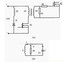 電路原理圖如圖3(a)所示,N3為去磁繞組,S2為所驅(qū)動的功率管。R2為防止功率管柵極、源極端電壓振蕩的一個阻尼電阻。因變壓器漏感較小,且從速度方面考慮,一般R2較小,故在分析中忽略不計。其工作波形分為兩種情況,一種為去磁繞組導通的情況,見圖4(a);一種為去磁繞組不導通的情況,見圖4(b)。