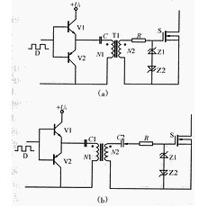②該電路只需一個電源,即為單電源工作。隔直電容C的作用可以在關斷所驅(qū)動的管子時提供一個負壓,從而加速了功率管的關斷,且有較高的抗干擾能力。