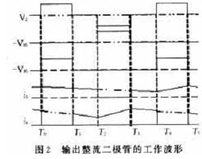 輸出整流二極管的工作波形如圖2所示。