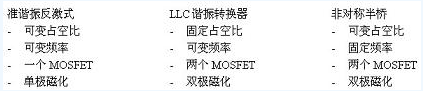 圖1:準(zhǔn)諧振、LLC和非對(duì)稱(chēng)半橋拓?fù)涞谋容^
