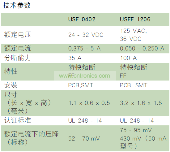 USF 0402 和 USFF 1206 SMD 保險(xiǎn)絲