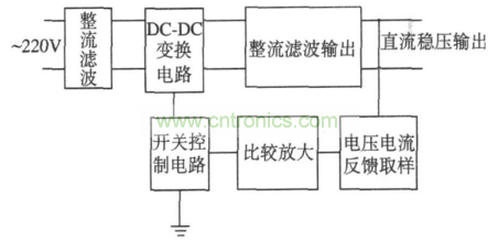 圖1 開關(guān)電源原理框圖。