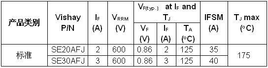 導(dǎo)讀:Vishay近日推出新款通過(guò)AEC-Q101認(rèn)證并具有ESD保護(hù)的600V標(biāo)準(zhǔn)整流器SE20AFJ和SE30AFJ。該款高電流密度器件通過(guò)AEC-Q101認(rèn)證,具有高達(dá)3A的正向電流。