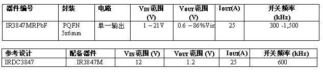 IR亞太區(qū)銷售副總裁潘大偉表示:“有了具有實際差動遙感功能的新款大電流IR3847,IR便可以通過完全集成的解決方案應(yīng)對受到熱度和空間限制的高密度、大電流應(yīng)用所面臨的挑戰(zhàn),該方案適合最大25A的電流,可以在僅有168mm2 大小的電路板上提供滿足負載要求、優(yōu)于3%的總輸出精度,而同類器件的總輸出精度一般都是5%甚至更高。IR3847通過大幅減少抖動,使脈沖寬度僅為50ns,因而能夠提供更高的閉環(huán)帶寬,并可以實現(xiàn)更理想的瞬態(tài)響應(yīng)和較低輸出電容,同時還可在更小尺寸的電路板中實現(xiàn)較大頻率的操作。我們的客戶希望不影響基準(zhǔn)性能和密度的實現(xiàn),IR3847可以滿足這些需求,并可以進一步簡化設(shè)計流程。”