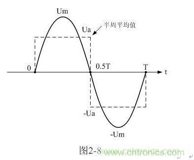 順便說明,這里的半周平均值,并不是一般意義上的正、負半周波形完全對稱交流電壓正半周、或負半周的平均值,這里的半周平均值是泛指整個周期中的正半波電壓或負半波電壓在半個周時間內的平均值。如圖2-9所示。另外,(2-19)、(2-20)式中的半周平均值Ua和Ua-與第一章中(1-70)、(1-71)式定義的半波平均值Upa和Upa-也稍有一點差別,Ua和Ua-與Upa和Upa-的差別,主要是在分母上。