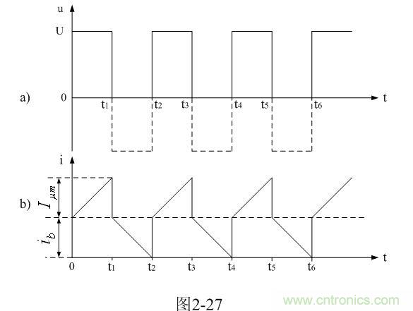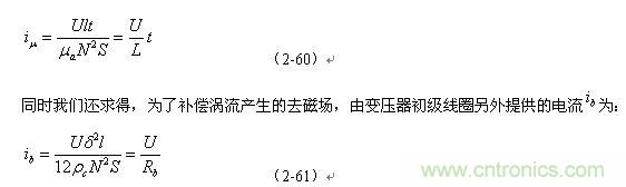 我們從圖2-27-b中可以看出,在輸入電壓作用期間,勵磁電流 是跟隨時間線性增長的;而渦流損耗電流