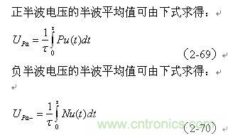 (2-69)、(2-70)式中,Upa和Upa-分別為各種脈沖波形的正、負半波平均值;Pu(t)和Nu(t)分別為各種脈沖波形的正波形函數(shù)(正半周)和負波形函數(shù)(負半周),τ為正、負脈沖寬度。大部分雙極性交流脈沖,其正、負半波平均值的絕對值都相等,但符號相反。