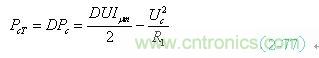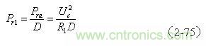 (2-75)式中,Pr1為,變壓器初級線圈加電壓期間,勵磁電流 為反激輸出存儲的功率;Pra為反激輸出功率的全波平均值;Uc為濾波電容兩端的電壓;D為輸入脈沖的占空比,